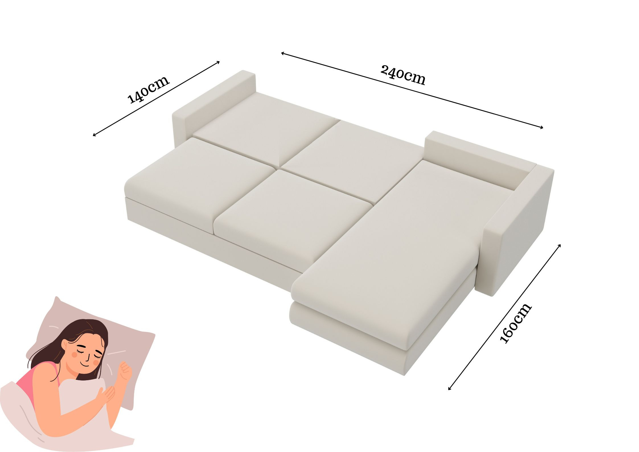 Pikowany narożnik Lewy z funkcją spania PREGO
