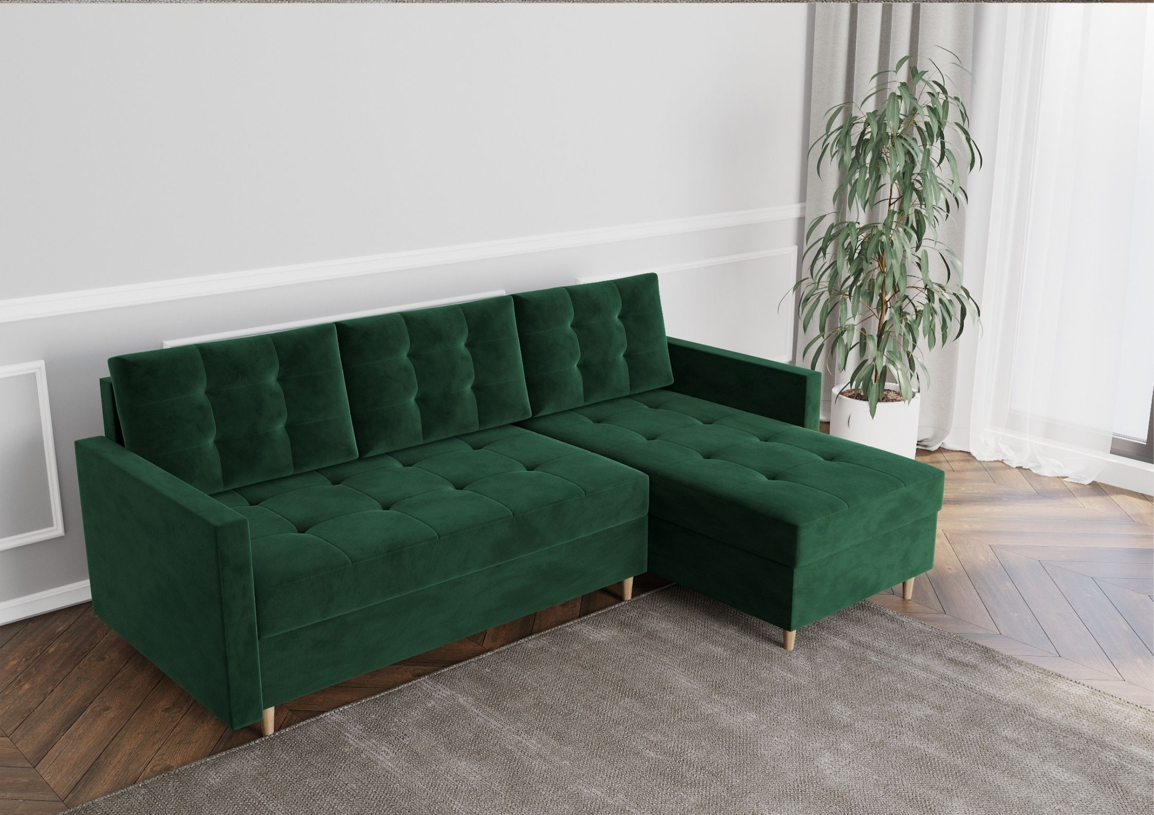 Narożnik pikowany na drewnianych nogach rozkładany VIDO Uniwersalny