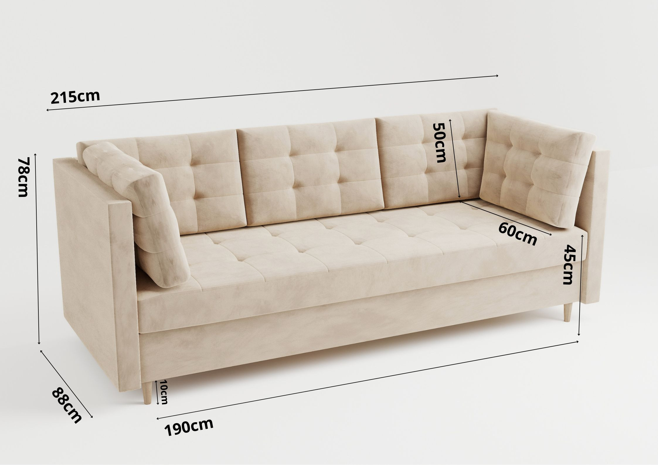 Pikowana sofa skandynawska VIDO z funkcją spania